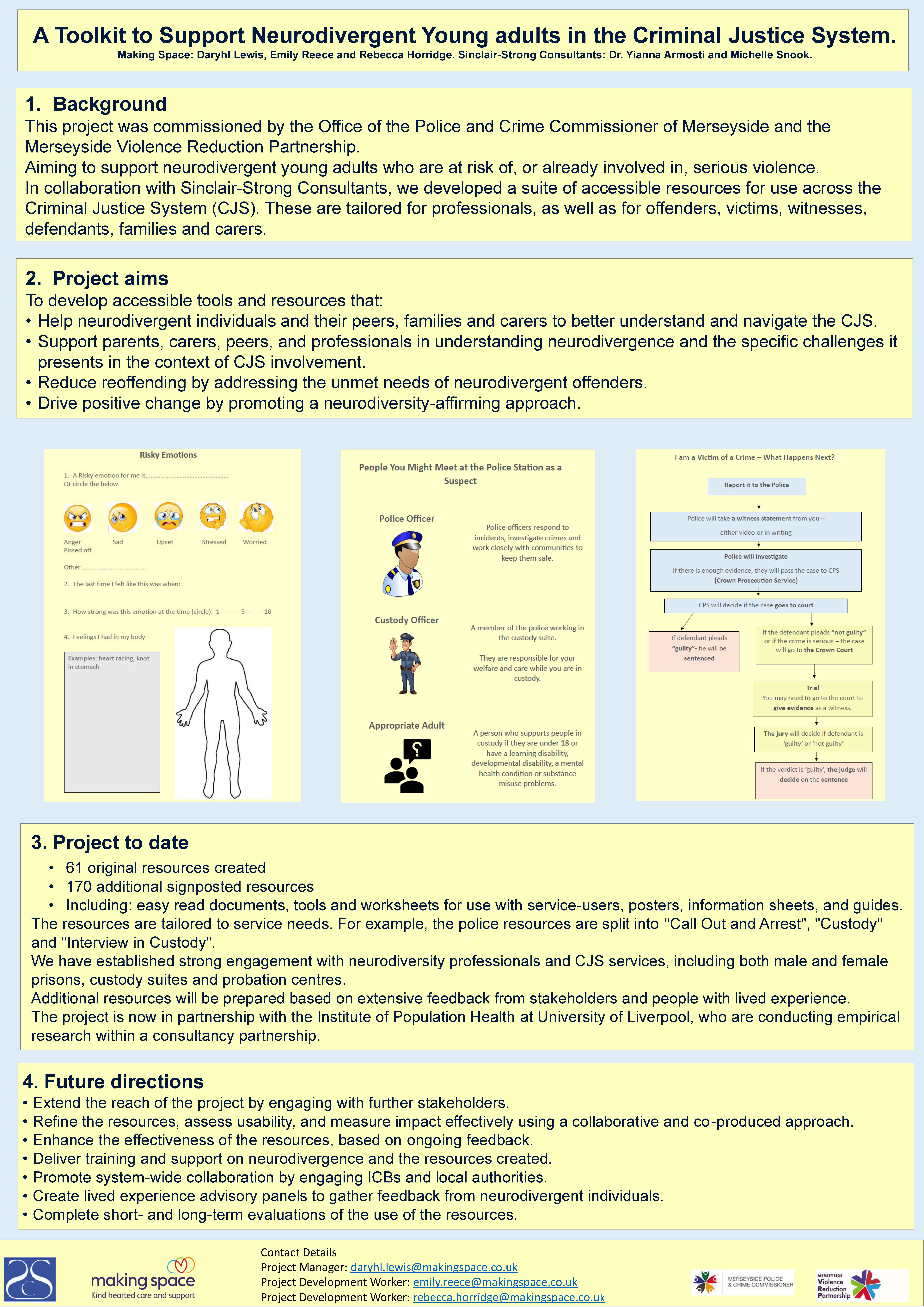 Delegates were invited to view the NRiPN Research Poster Exhibition, showing 5 posters. The prize for the best poster went to Darhyl Lewis and the team from Making Space for A Toolkit to Support Neurodivergent Individuals Navigating the Criminal Justice System. Darhyl won of 3 books from the Routledge criminal justice list.